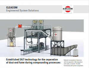 Keller Technologies is showcasing their CLEACOM Engineered System Solutions for the separation of dust and fume during compounding processes. Please contact Dempsco at (937)436-1000 / info@dempsco.com for more details on Keller’s CLEACOM all-in-one solution for maximum efficiency during the compounding and extrusion processes. Keller analyzes specific processes and delivers turn-key all-in-one solutions.