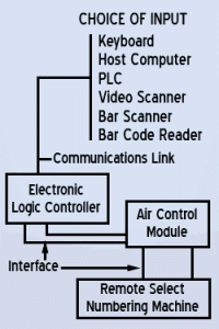 With an automatic numbering head, there are two (2) pneumatic valves. One controls the marker striking the part, the other controls the numbering head actuator that ratchets the auto wheel to the next position. Valve #1 is fired to mark a part, valve #2 is fired at the end of each shift to actuate the wheel and change the reading. The five (5) auto wheels are all sequenced in line, so the operators don’t need to change the tool at all. Once per week, at the end of 3rd shift, valve #2 is fired (9) times, this allows the day code “1-7” to reset back to “1” and the unit is good to start the new week.